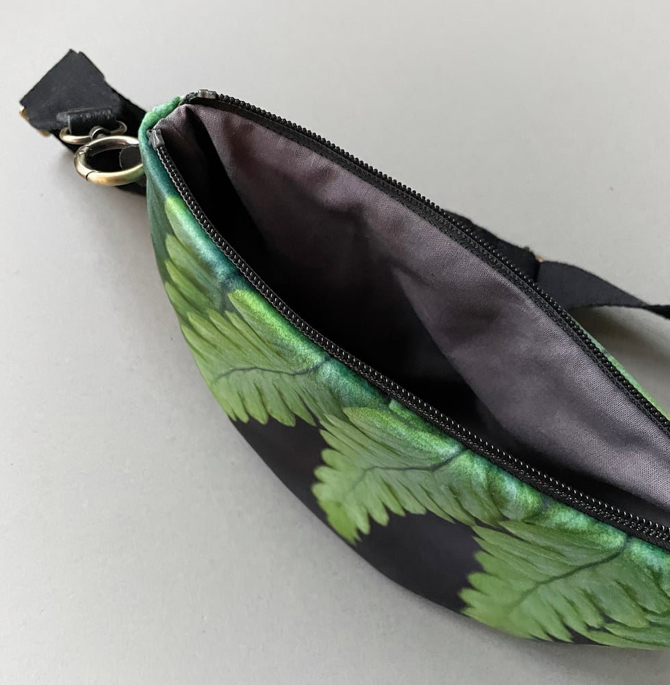 Fern fronds feature on both sides of this velvety crossbody shoulder bag. A luxe finish which is sturdily handmade for everyday wear.