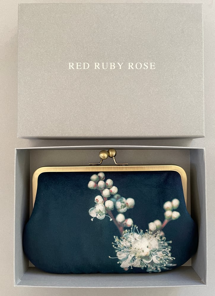The bag is topped with a brass kisslock frame and will hold your essentials including phone, keys and wallet and arrives in a keepsake Red Ruby Rose gift box.