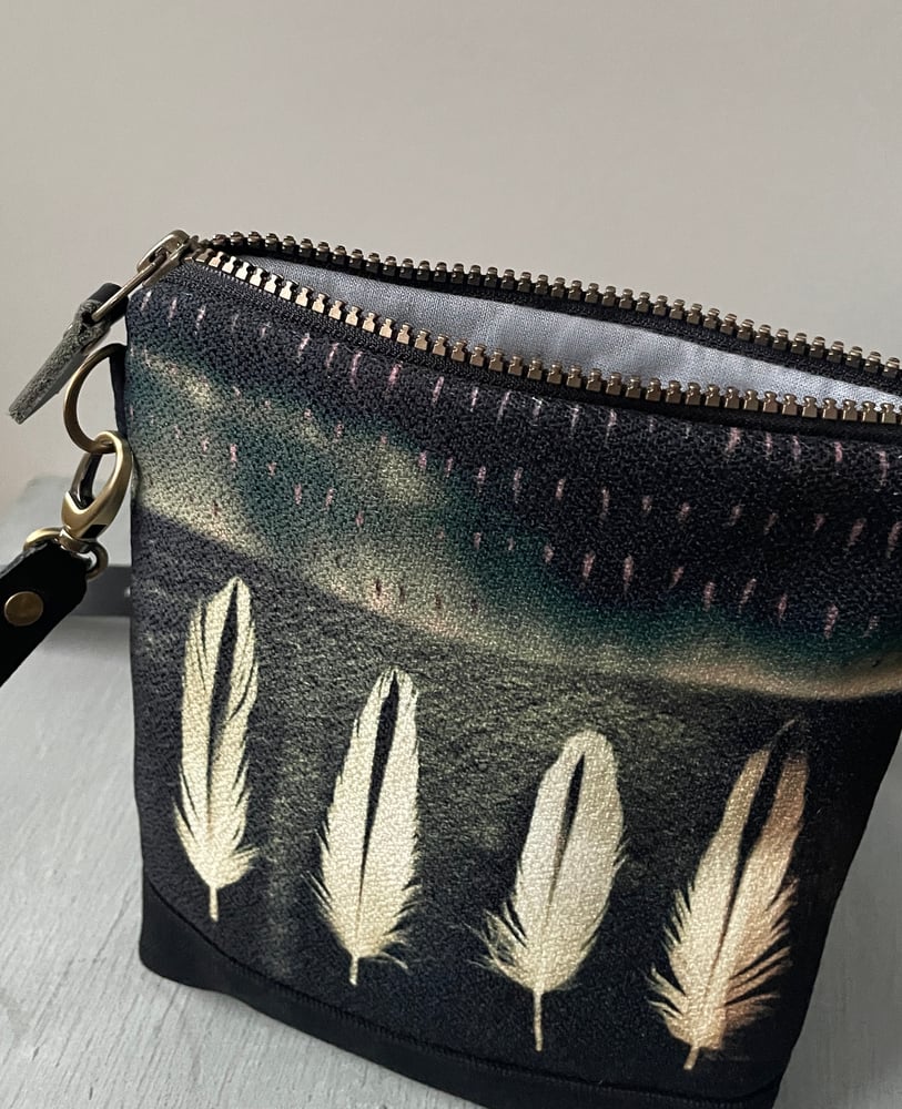>> About this bag. Inspired by seasonal natural landscapes, flora and fauna, these oystercatcher feathers were beachcombed in Ross-shire. Fabric printed in the UK and every piece cut, constructed and handmade by Rowena in her coastal studio in NW Scotland.