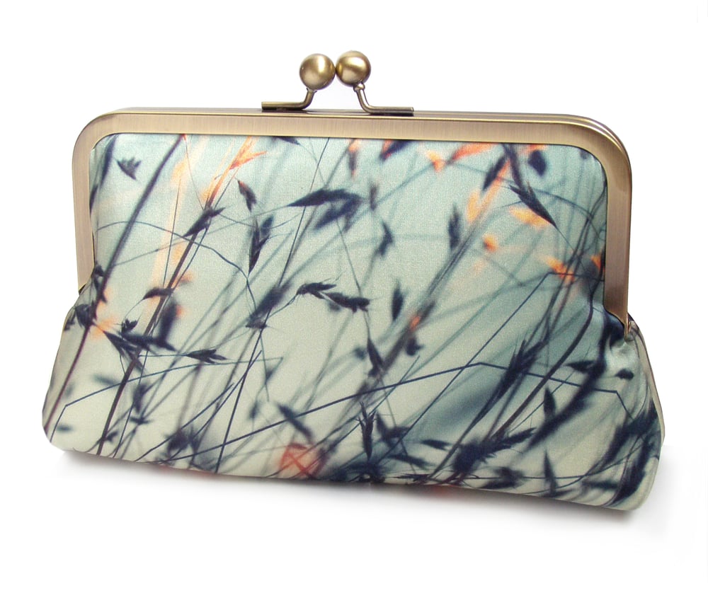Stipa grasses, printed fabric clutch bag + optional chain handle