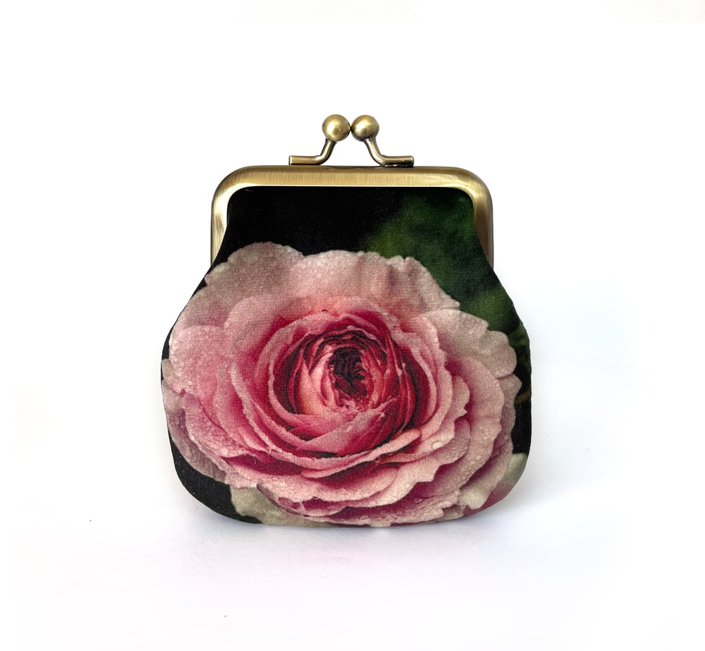 Winter rose, velvet kisslock coin purse with silk plant-dyed lining