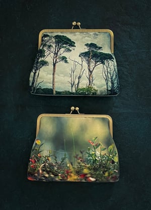 Woodland glade, large kisslock bag with chain or crossbody leather strap